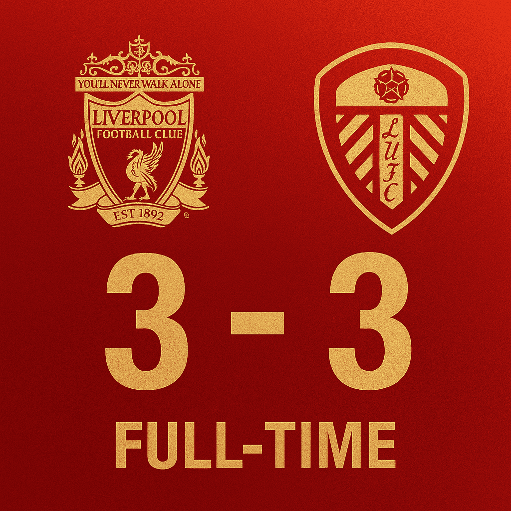 Liverpool were held to a dramatic 3-3 draw at Elland Road after a wild, end-to-end contest in which both sides traded momentum, quality and mistakes in equal measure. Arne Slot’s men showed attacking spark throughout the afternoon but defensive lapses proved costly, allowing Leeds to claw their way back each time the Reds tried to take control.